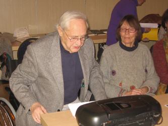 Joachim Giebelhausen kündigte eine vorgezogene Faschingslesung an: Ein spannendes Pferderennen hatte er auf die Waitzinger Wiese verlegt, es mit Persönlichkeiten aus Politik und Aristokratie gespickt, mit Pferdegetrampel vom Tonband untermalt und furios-humorvoll mit realistischen Spitzen auf aktuelle Begebenheiten kommentiert. Ein Genuss waren auch die Gedichte von Marianne Porsche-Rohrer. Dass auch ungesunde Sachen Eingang in ihr neues Buch Gute Gerüche aus der Naturheilküche fanden, bewies sie mit den Gedichten zu Marzipan, Sahnetorte und Toastbrot. Die sollte man ohne Reue auch mal zu sich nehmen – um nicht selbst ungenießbar zu werden. Paul Wendland kam wieder zur Jahreszeit zurück und trug zwei Kinder-Wintergedichte vor, von frierenden Bäumen, frostigen Winden und klaren Vollmondnächten, die Träume wahr werden lassen. Es menschelte, „maielte“ und „juleite“ in dem Gedicht vom Menschen und dem Kalenderjahr, von Monat zu Monat wurde aus jung alt und dann wieder die Umkehr.