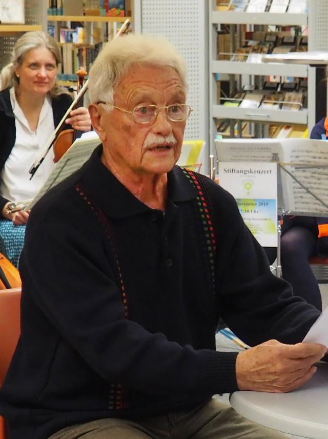 Mit seinem sehr kryptischen Titel rief Helmut Glatz den nächsten Lesenden auf, Max Dietz. Er hatte 2018 an der Anthologie „Unsere Würm – ein Florilegium“ der Grägs (Gräfelfing) mitgewirkt. In „Wirmina träumt“ konnte man dem Hufschlag des Meldepferdes folgen, erleben, wie ein wogender See sich zur Ruhe wandelt, Raumzeit zu Traumzeit wechselt, Pippin seine Bertha findet und die Wasserfrau Würma Hahnenfußkränzchen bindet. Tosende Wortgewalt … bis zum Aufwachen!