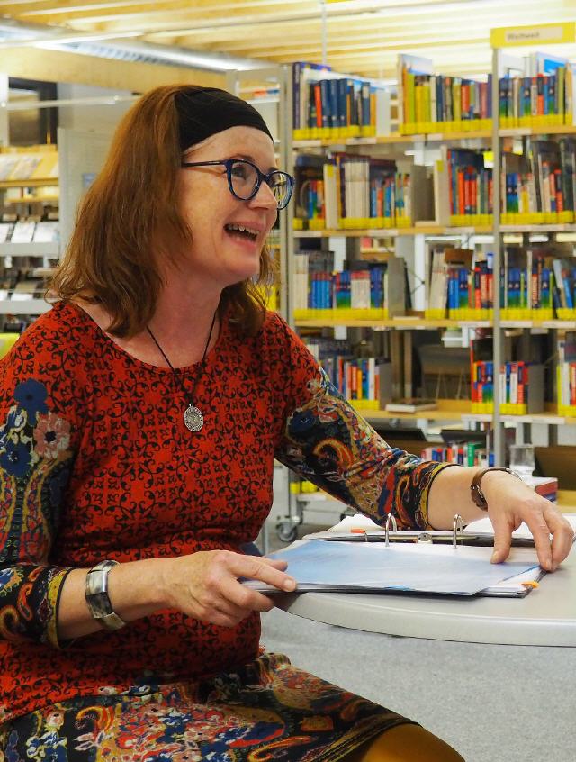 Damit wendete sie sich dem verschatteten Zauberwald zu. Glück und Neid, Liebe und Verlust, die Themen, die oft in Märchen zur Lösungsfindung ausgebreitet werden, seien auch hier präsent. Dazu las Monika Sadegor den Abschnitt, als der alte König seinen jungen Sohn entsendet, für sich selbst den Schlüssel zum Glück zu suchen. „Woran werde ich’s erkennen?“, fragt der Jüngling unsicher. „Die Glocken deines Herzens werden es dir künden“, spricht der weise König. Und ja, die Suche in der Schatzkammer blieb erfolglos, wie wir schon ahnen. Aber es wäre ja kein Märchen, tröstete die Autorin, ginge es nicht gut aus. Doch durch welche Wirren der junge Mann seine Reifung erlebt, müsse man sich schon selbst erlesen …
