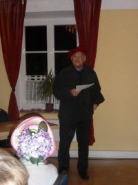 Reizvoll, unterhaltsam und sehr abwechslungsreich gestaltete sich diese Faschingslesung! Roland Greißl moderierte kurzweilig, als Prof. Dr. Wladimir Tausendfuß verkleidet, und konnte unter großem Beifall zwei längst fällige Ehrungen vornehmen: Claire Guinin erhielt die Goldene Spitze Zunge in Silber für ihre langjährigen, pointierten Kommentare und Joachim Giebelhausen das Goldene Blatt in Silber mit der dringenden Bitte, weiterhin seine hintersinnigen Nonsensgedichte und -texte zu produzieren.