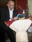 In der Pause schlendern einige der rund 40 Zuhörer zum reich gedeckten Tisch, der mit neuen Büchern und Gedichtkarten der Autoren aufwartet. Mit einem „Engel“-Lied der besonderen Art lädt die Chansonnière zum zweiten Teil des Abends ein.