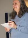 Weiter ging es mit Thomas Glatz’ skurrilen Versuchen über die Erinnerung an kurze oder lange Augenblicke, wechselnd zu Heinz Otto Singers Fischernetz, das sich unbeirrt von der lockenden Sonne seiner Bestimmung zuwendet, hin zu Helmut Glatz’ wortspielreicher Ironie über verlorene und wartende Augenblicke. Rogo De Ville verknüpfte die Sehnsucht nach Liebe mit ihrer konkreten Begierde, und mit Theresa Schermers bleibenden Eindrücken des Kennenlernens ging es zurück zum Anfang einer Beziehung. Gastautor Detlev Möller ließ alle in seinem tiefen Gedicht über das Zwiegespräch des lyrischen Ichs mit einem fallenden Blatt auf dessen Wiedergeburt im Frühjahr hoffen. Barbara Koopmanns Erkenntnis der fehlenden Tiefenschärfe des Augenblicks und Martje Herzogs Therapiesitzung, die erst im letzten Augenblick die Chance auf Heilung offenbart, schlossen den ersten Teil ab, der das Publikum sehr begeisterte.