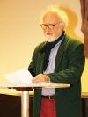 Der Akteur von Monika Sadegors aufregender Geschichte des gemütlichen Untermieters, der zunehmend zudringlicher wird, war schließlich nicht ein zunächst vermuteter graumelierter Herr, sondern ein Held auf Samtpfoten, was alle kurzzeitig Mitempörten in einem Schmunzeln entspannen ließ. Die alte Geschichte von Schmuel, der auf der Suche nach seinem wertvollen Regenschirm den Rabbi befragt, wurde von Benno von Rechenberg mit einem Augenzwinkern als literarisch aufgebaute Symphonie mit Variationen geschildert, was die Zuhörer gleichsam staunen ließ und erfreute.