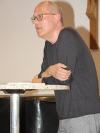 Einen schwungvollen Einstieg in den Abend bot Rudi Fichtl mit zwei Gedichten aus seinem soeben erschienenen ersten Buch „Das Kribbeln beim Bestatten dicker Dänen“: „Frühling“ und „Tante Therese lädt ein“, die dem Genre Satirische Lyrik alle Ehre machten. Obendrauf setzte er noch zwei brandneue Werke: „Abserviert“ und „An Monika“. In gefühlvollen Zeilen erspürte Carmen Kraus mit dem Gedicht „Muse, du“ die Muse, die ihr gerade am nächsten stand: Thalia, jene des Theaters, die Lachen und Weinen vereint. An ein Gedicht der rumänischen Autorin Ana Blandiana angelehnt schrieb sie „Das Wunder“, um dessen wunderbare Explosion der Glücksgefühle auch dem deutschen Publikum zu erschließen.