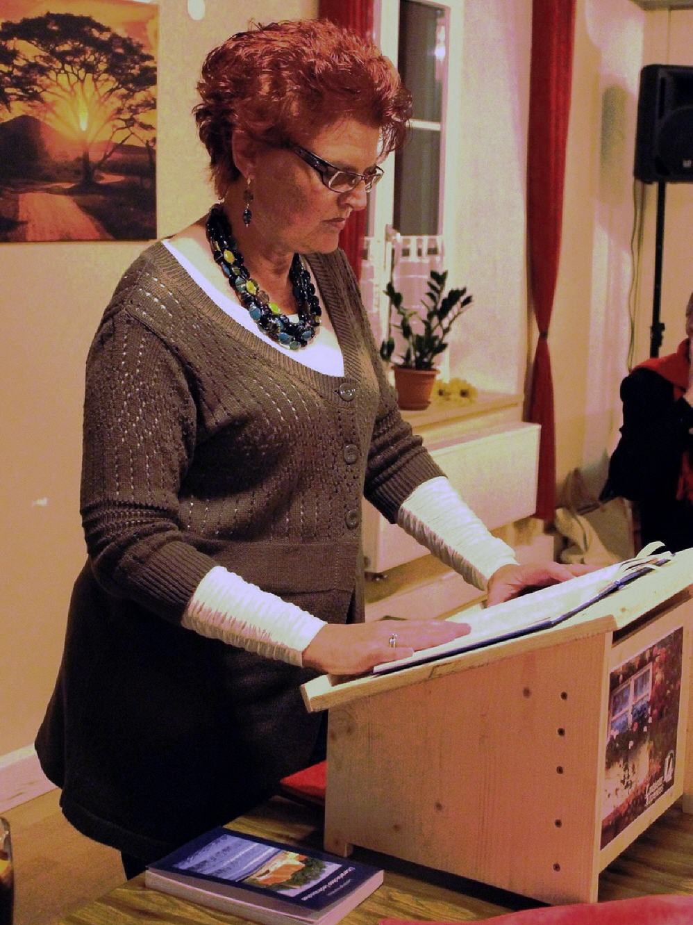 Den Anfang machte Marianne Porsche-Rohrer aus Schongau. Mit ihren äußerst amüsanten, aber sehr lehrreichen lyrischen Heilpflanzen-Rezepten gewann sie das Publikum im Sturm – und vermittelte einen Eindruck von ihrem lustigen Büchlein „Mit Malventee am Kanapee“.
