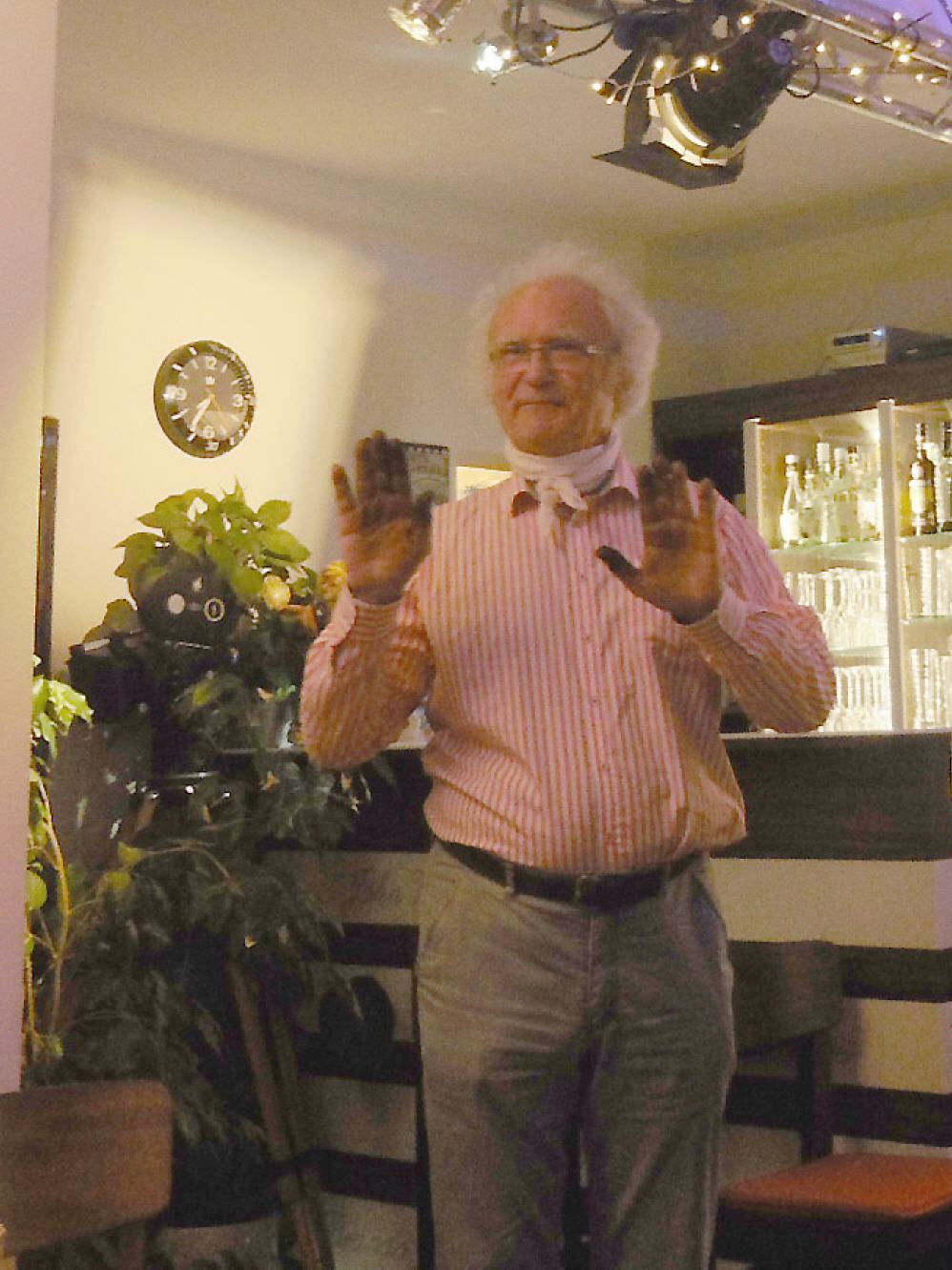Fred Fraas wiederum verstand es, mit Worten umzugehen aus besonderem Anlass. Geht es bei seiner wohlgestalteten Ballade über „Sousa“ doch um ein Geschehen, das noch nie gesprochene Worte auf die Lippen bringen könnte. Geheimnisvoll lässt aber auch seine Ballade das, was nicht gesagt werden kann, dann doch schwebend in der Luft. Reinhard Wendland beendete den Reigen der Lesungen, entsprechend dem fehlenden Wort mit einer offenen Frage.