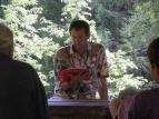 Renate Exsz, Helmut Glatz, Thomas Glatz, Klaus Köhler, Angelika Müller und Organisator Boris Schneider präsentierten mit viel Liebe eine breite Palette „Wortzauber“ in Form von Märchen für Groß und Klein, mehr oder weniger verrückten Geschichten aus früheren Zeiten oder den jetzigen Jahren, lustigen Stanzen und Lyrik quer durch alles, was das Leben so zu bieten hat. Da war für jeden Zuhörer was Schönes dabei – anscheinend auch für ein besonders vorwitziges Reh, das sich immer wieder einem Leseplatz näherte.