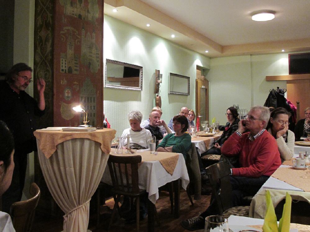 Es ist ein guter Brauch des Landsberger Autorenkreises, immer wieder Literaten aus anderen Regionen einzuladen. Diesmal waren die Mitglieder des in der Insiderszene fast schon legendären Münchener „Salzstangensalons“ gekommen. Dahinter verbirgt sich ein Kreis befreundeter Schriftsteller, die zumeist für die renommierte Literaturzeitschrift „Am Erker“ schreiben. Moderator Thomas Glatz, selbst Mitglied und Mitbegründer der „Salzstangenliteraten“, freute sich über die zahlreichen Zuhörer – der Nebenraum des Gasthofs Il Lago di Garda war bis auf den letzten Platz besetzt. Die Reihenfolge wurde durch das Los bestimmt.