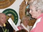 wurde wieder traditionell von Marianne Spengler vorgetragen. In einem Gedicht ihrer verstorbenen Tante Thekla Balser sinnierte sie, „wenn mer so beinanda sitzet“ über die gute alte Zeit. Sie erinnert an „d’Frau, die han Bändle gschnitta“ und an den „Fegsand! Fegsand!“ rufenden Kramer, den man schon erwartet hatte, um das Bad damit putzen zu können. Auch der „Schereschleifr“ kam in den Ort und so mancher Handwerksbursche. An den „Blosbalch“ dachte sie, ohne den es „in de Kurch it g’orglet“ hat.