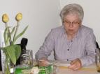 Auch Ida Rittner, mit 91 Jahren die derzeit älteste Autorin dieses Landsberger Kreises, hatte etwas dazu beizutragen, lag ihre Heimat doch einst an der Vils. Und damals war man selten motorisiert, aber oft „auf Schusters Rappen“ unterwegs. In ihrem Gedicht hat „d’Sunna gscheind", klar, dass "ma dou wos zu saafa" braucht, aber auch „Braoud und a Schdickl Greicherds“ (Brot und Geräuchertes). Dabei hat man noch auf ganz altmodische Art „deane Vochela zoughurchd“, was herrlich entspannend war. Kritisch wurde sie im Gedicht „Mensch und Erde“, in dem sie die Erde selbst zu Wort kommen ließ, die den Raubbau an ihr und am Mond anprangert. Die theatererprobte Autorin warb mit fester Stimme für mehr Verständnis und mahnte, gegen Neid und Habgier anzukämpfen, denn: „Lieber Mensch, vergiss es nie: Die Erde braucht uns nicht, wir brauchen sie.“