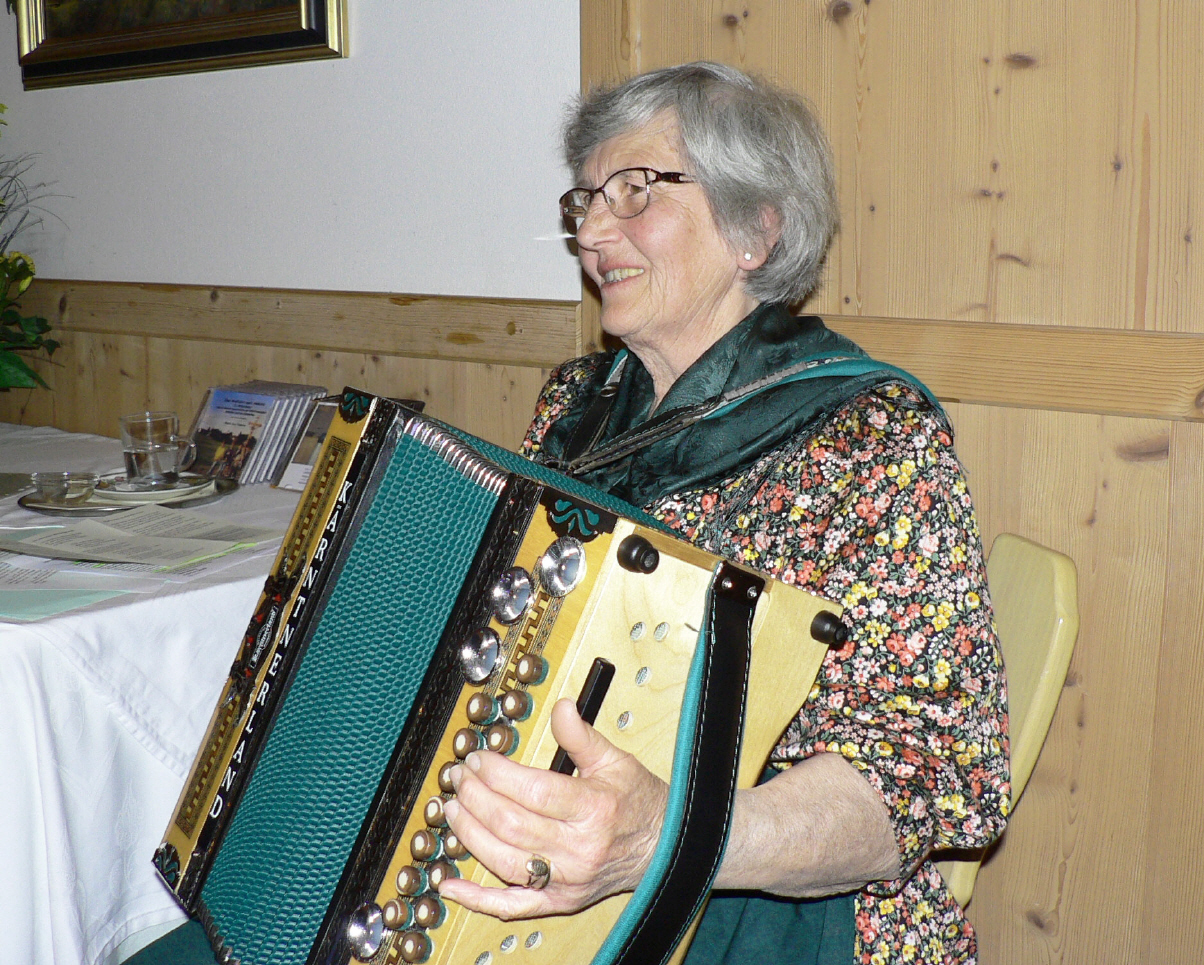 Stedele, dessen Gedenken im Mittelpunkt des Abends stand, hatte auch ein Faible für die Musik und liebte es, den Vortrag seiner Texte mit Volksliedern eingerahmt zu sehen. So gab im Verlauf des Abends Adelheid Reßler auf der „Ziach“ stimmungsvoll den Ton vor, und das Publikum sang bereitwillig und volltönig das „Heideröslein“, „Im schönen Wiesengrunde“ und weitere Lieder mit.