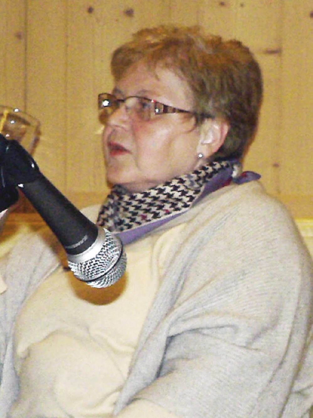 Der aus der Oberpfalz stammende Max Dietz wiederum glänzte mit zwei eigenen Texten in dortiger Mundart. Seine Verse „Häia doch aaf“ und „Wos sagsd dou du?“ konnte man noch einigermaßen verstehen. Der Egerländer Dialekt aber, mit dem Oberpfälzischen verwandt, blieb den Zuhörern fast gänzlich verschlossen, obschon die Geschichte des aus Eger stammenden Helmut Glatz in Dettenschwang spielt und davon erzählt, wie es zu- und ausging, als Vertriebene dort im Jahr der Trockenheit 1947 sich heimlich Forellen aus den austrocknenden Bächen sichern wollten. Hilde Braunmüller, die aus dem Altvatergebiet stammt, setzte mit drei farbigen Gedichten und Anekdoten lustige Tupfer im österreichisch-schlesischen Dialekt. Monika Sadegor trug im niederbayerischen Dialekt ihre Lebensrückschau einer Passauerin vor. Und das Münchner Kindl Claire Guinin, vor bald einem Vierteljahrhundert nach Landsberg gekommen, erzählte in lupenreiner gehobener Münchner Mundart aus der Kindheit „in meinem München“. Carmen B. Kraus wiederum, die aus dem Banat stammt, steuerte mit ihren Reimen im pfälzisch angehauchten donauschwäbischen Heimatdialekt Besinnliches bei zum Werden, Älterwerden, Vergehen und Verschwinden. Schließlich kamen in drei ambitionierten Gedichten von Theresa Schermer, deren Mann aus Meran stammt, Klänge des Südtiroler Dialekts zur Geltung.