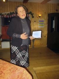 Danach eröffnet Adelheid Reßler die Autorenkreis-Sequenz mit mehreren Stücken auf ihrer „Steirischen“ Ziehharmonika, zu denen sie Lieder in niederbairischer Mundart singt. Roland Greißl stellt den Landsberger Autorenkreis dem Publikum vor; dann eröffnet er die Reihe der lesenden Autoren mit einem aktuellen Text über Landsberger Finanzprobleme; er liest diesen zusammen mit Susanne Zehnter, einer Freundin von Carmen B. Kraus aus Landsberg. Der Reihe nach lesen anschließend: Lore Kienzl (feinsinnige Gedichte über Musik und Kunst), Marianne Porsche Rohrer (zum Schmunzeln anregende gereimte Rezepte aus ihrem Heilkräuter-Büchlein), Carmen B. Kraus (Gedichte zu Gefühlskälte und -wärme und dem Winterschlaf der Farben), Maria Möhrle (zeitkritische Texte); Adelheid Reßler erzählt zum Ende ironisch-theatralisch eine Geschichte und trägt in Versform eine glühende Liebeserklärung an ihren Mann vor, vor zehn Jahren geschrieben, aber aktuell wie eh und je. Das Publikum ist begeistert. Roland Greißl moderiert die Autoren und liest zwischendurch auch Texte aus der neuen Anthologie „Literarisches Lechrauschen“ (Link) des Landsberger Autorenkreises.