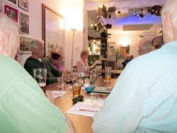 Die zweite Runde startete mit Heidenore Glatz, die Urlaubsimpressionen in Gedichtform mitgebracht hatte. Dieter Vogel las eine absurde Geschichte über eine Frau aus dem Fuchstal, die immer jünger wird. Carmen B. Kraus hatte Gedichte über bewegende „Worte von Jericho“ bis hin zur „Schweigezeit“ dabei.