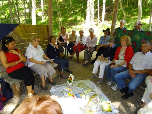 Ein Nest voller Wildbienen war dafür verantwortlich, dass der Leseort bei der Wildfütterung diesmal etwas weiter entfernt an den Rand der Lichtung verlegt werden musste. Der Lechlyriker Hans Schütz hatte neben Gedichten auch Geschichten über den ehemals „wilden Hund“ Lech mitgebracht. Marianne Porsche-Rohrer sorgte mit Heilpflanzengedichten aus ihrem Buch „Mit Malventee am Kanapee“ für humorvolle Abwechslung.