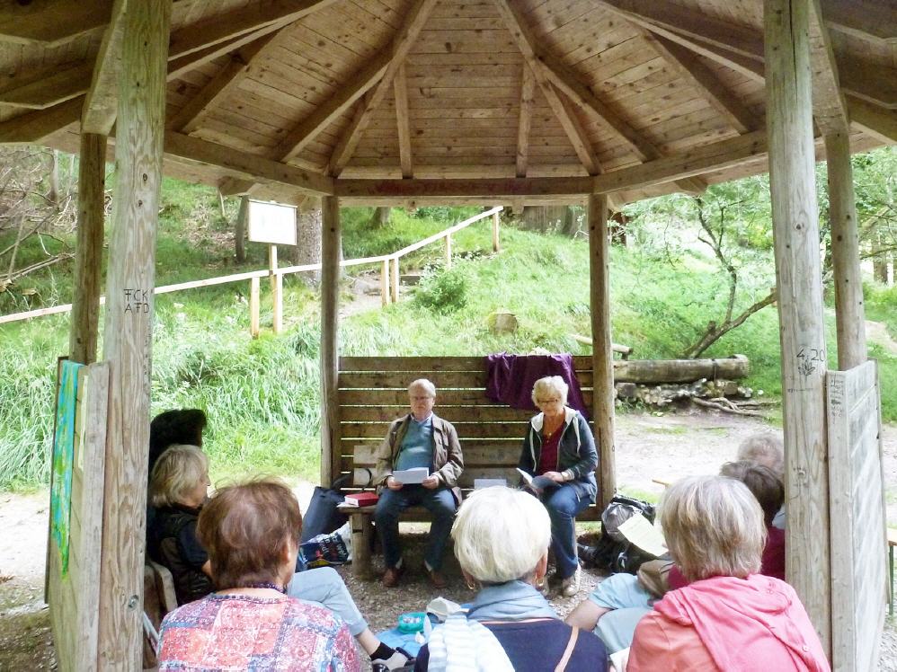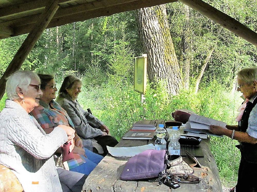 Mitglieder des Landsberger Autorenkreises lasen nunmehr schon das neunte Jahr in Folge Geschichten und Gedichte aus ihren eigenen Werken an „verwunschenen Plätzen“ im Wildpark in der Pössinger Au. Nach brütender Hitze, Nieselregen und Mückenplage an den Tagen davor waren die Bedingungen bei teils bedecktem, teils sonnigem Himmel und milden Temperaturen dieses Mal optimal. Entsprechend viele Leute nutzten den Sonntag für einen Spaziergang im Wildpark und ließen sich von den Autoren zu den Lesestationen locken, an denen das städtische Forstamt wie gewohnt Bänke zur Verfügung gestellt hatte.