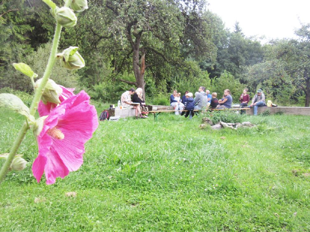 So warteten an manchen Stellen schon einige interessierte Zuhörer, als die Autoren noch gar nicht fertig ausgepackt hatten. Welch eine Motivation! Das Publikum war stellenweise sehr ausdauernd, gab Rückmeldungen und stellte auch Fragen, was die Autoren sehr freute. Das Angebot des Autorenkreises konnte sich wieder sehen oder vielmehr hören lassen: An den fünf Standorten, die sich bequem erwandern ließen, waren jeweils ein oder zwei Autoren vertreten. Von Gurnemanzgeschichten bis zu Lyrik über den Wellengang des Lebens, von Humorvollem aus Vitalien bis hin zu Märchen über Meerjungfrauen konnte sich Jung und Alt nach eigenem Geschmack die Rosinen aus dem Angebot herauspicken.