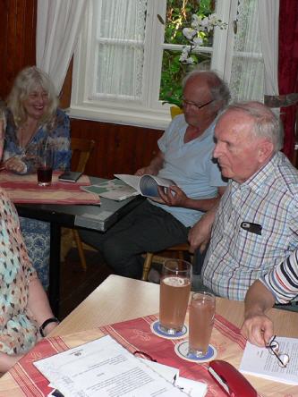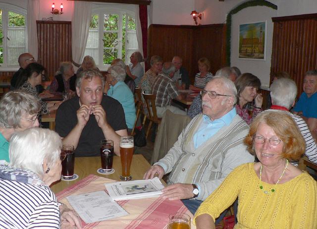 Bald wurde klar: Gedanken sind keine Fische! Denn Gedanken sind nie vollständig, sie entsprechen vielleicht einer Flosse, einer Schuppe, höchstens einem Fisch-Maul. Und jeder der Zuhörer hat sich wohl einen anderen Fisch aus dem Gehörten geformt. Es ging ja auch ganz schön hin und her, man wurde vom Stegener Biergarten zu Tomaso nach Neapel, von einer griechischen Insel ins Oldenburger Land katapultiert, um schließlich doch auf dem heimatlichen Balkon mit seinen abendlichen Geheimnissen zu landen.